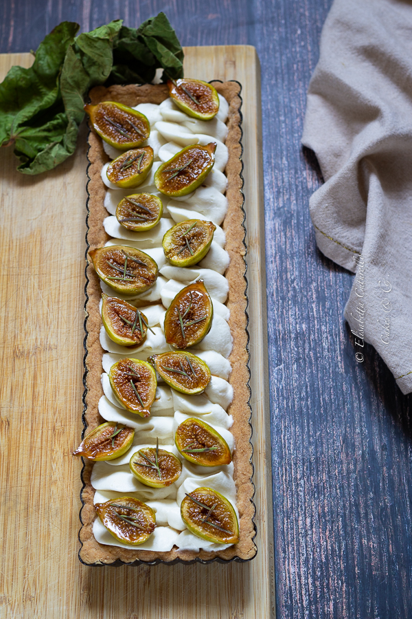 La crostata fichi e rosmarino è una crostata semplice da preparare ma golosissima il ripieno di caprino e yogurt si sposa alla perfezione con i fichi e il rosmarino caramellati.