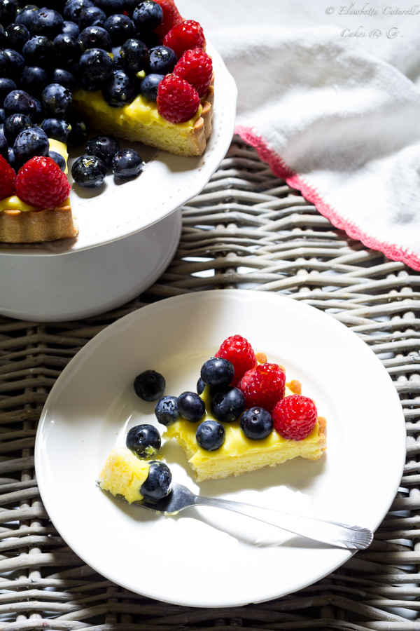 Crostata-frutta-mandorle-crema pasticcera-fetta-cucchiaino