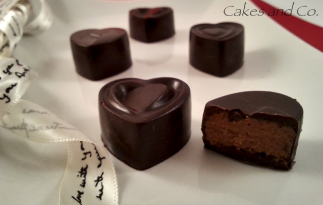 Cuoricini di cioccolato ripieni di ganache al rum e pralinato