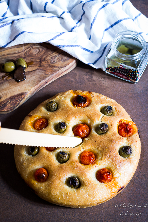 Focaccia-olive-ripiene-al-tartufo-pomodorini-coltello