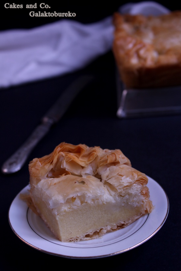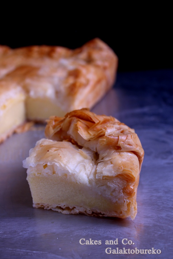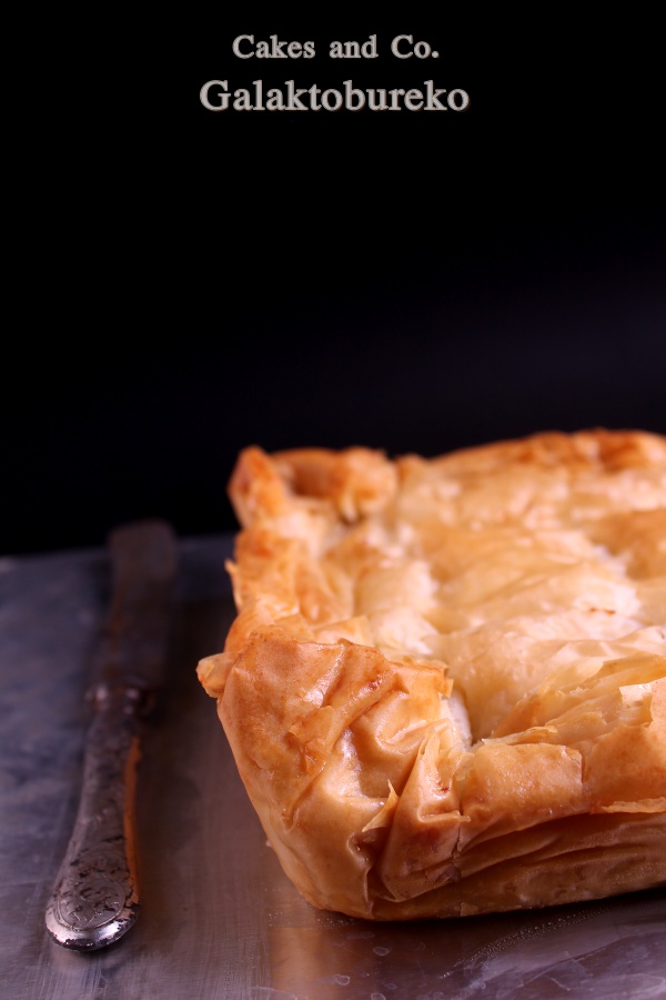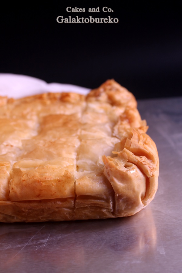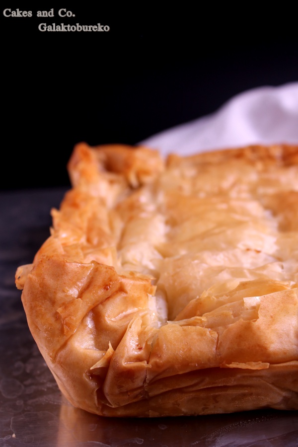Circa un mesetto fa mi sveglio, e come ogni mattina vado a fare visita al mio pollaio preferito su facebook, e scopro che l’instancabile Jessica, dopo l’ormai tradizionale swap natalizio, si è inventata un altro bel gioco per farci divertire e per conoscerci un po’ di più fra di noi. Il gioco si chiama “Scambiamoci una ricetta” e consiste nel rifare ognuna la ricetta di un’altra blogallina, lasciando che sia la sorte a decidere come saranno formate le coppie. Il fato ha voluto che io dovessi rifare una ricetta di Giulia del blog Pepper’s Matter, mentre a Cristina di Pan per focaccia è toccato sbirciare nel mio blog e ha rifatto alla perfezione la mia focaccia alla zucca e sesamo nero. Grazie mille Cristina! Sfogliare più o meno tutte le ricette di un blog fino a trovare quella che più ti colpisce è un po’ come entrare in contatto con l’altra persona. Ciascuno di noi, nei propri post ci mette un po’ di se, magari anche tra le righe. É difficile, di solito, rendersene conto leggendo solo qualche post, ma soffermandosi sul blog per più tempo la personalità di scrive vuoi o non vuoi emerge sempre e credo sia una cosa bellissima. Di Giulia, leggendo il suo blog, ho scoperto tante cose, che però non voglio raccontarvi perché è il suo mondo, ed è giusto che se avrete voglia di conoscere lei e le sue ricette dovrete andare a trovarla come ho fatto io. Vi voglio parlare, invece, della sua ricetta che ho scelto di rifare ossia il Galaktobureko. Il galaktobureko è un dolce greco che, malgrado il nome un po’ ostico, vi assicuro è buonissimo. Grazie a questa ricetta ho ritrovato i sapori di una bellissima, ma ormai lontana, vacanza in Grecia, dove avevo assaggiato per la prima volta questo dolce composto da un guscio croccante di pasta fillo e da una crema al semolino delicata e profumata. Io ovviamente non ricordavo assolutamente il nome di questa bontà, ma l’ho riconosciuto subito appena ho visto la foto nel blog di Giulia e quindi non ho resistito e ho deciso che questa sarebbe stata la ricetta per “Scambiamoci una ricetta”. Già, però, mi vedevo a dover fare la pasta fillo, cosa che ho già fatto in casa, perché io sono una patita delle esperienze estreme, dato che fino ad ora non ero mai riuscita a trovarla al supermercato. Ma è qui che mi viene in aiuto Giulia che mi dice esattamente dove trovarla, quindi grazie a lei ho scongiurato l’ora e mezza di palestra che avrebbe richiesto la stesura della fillo. Intendiamoci la fillo fatta in casa è buonissima, sfido poi a dire che non è buona se in mano ho ancora il matterello con cui l’ho stesa, ma vogliamo mettere la comodità di trovarsela già bella e pronta? Quindi risolto il problema fillo ho preparato questo dessert greco da leccarsi i baffi, vi sembrerà di tornare in Grecia se mai ci siete stati, anche perché la ricetta di questo dolce la nostra Giulia l’ha ricevuta proprio da una ristoratrice greca. Quindi basta chiacchiere, vi lascio la ricetta di questo dolce che, se risolvete il problema fillo, è anche semplice e rapido da preparare.