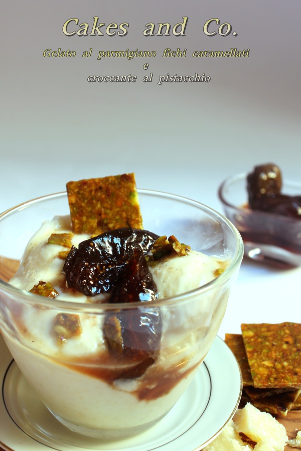Gelato al parmigiano fichi caramellati e croccante al pistacchio