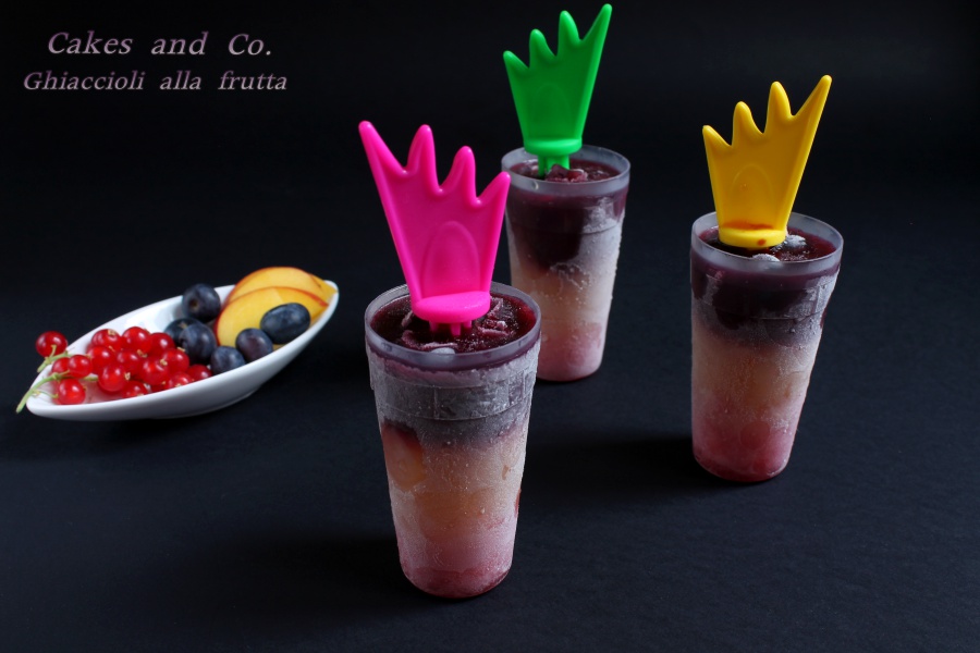 Ghiaccioli alla frutta melagrana, pesca e mirtilli