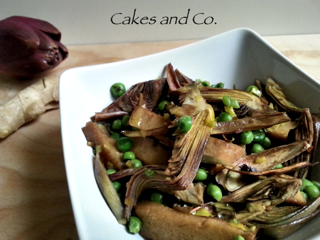 Seitan con carciofi piselli e zenzero
