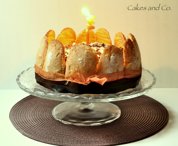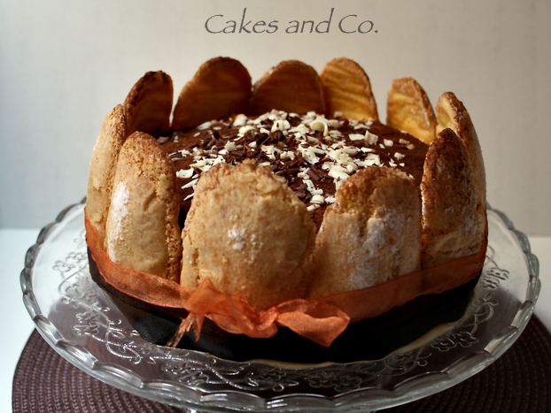 Mettete un primo disco di sponge cake su un vassoio,bagnatelo ben bene con lo sciroppo al caffé e farcitelo con circa tre cucchiai di crema al mascarpone, poi adagiate sopra alla crema il secondo disco di torta, bagnatelo con lo sciroppo al caffé e farcitelo con la crema al mascarpone, fate lo stesso con l’ultimo disco di torta, bagnatelo e completate il tutto con la crema al mascarpone, tenete da parte un po’ di crema al mascarpone che vi servirà per sistemare i savoiardi intorno alla torta. Ponete la torta in frigorifero a rassodare per circa 1 ora. Togliete la torta dal frigorifero e spalmate la crema al mascarpone che avete tenuto da parte sui bordi della torta, quindi disponete i savoiardi sul bordo della torta, la crema farà da collante. Lasciate rassodare la torta in frigorifero per circa 4’/5′ ore.